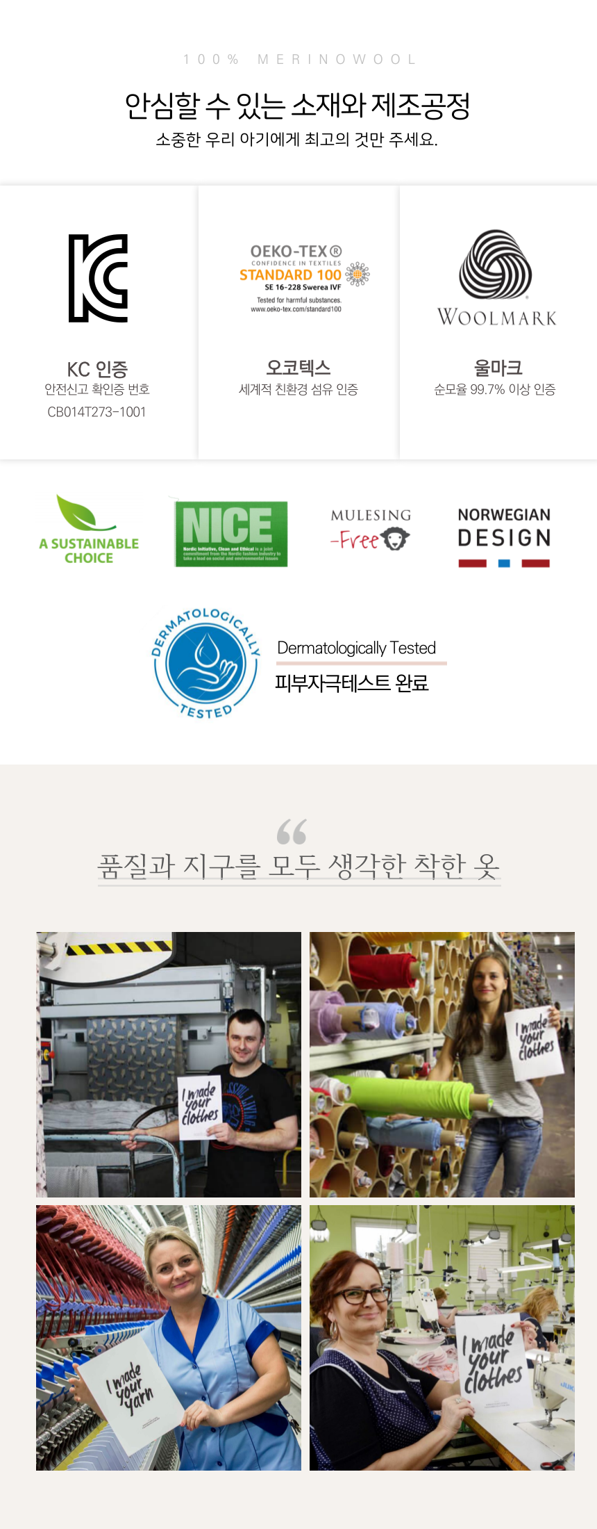 100% 메리노울 소재가 적정체온을 맞추어 주어