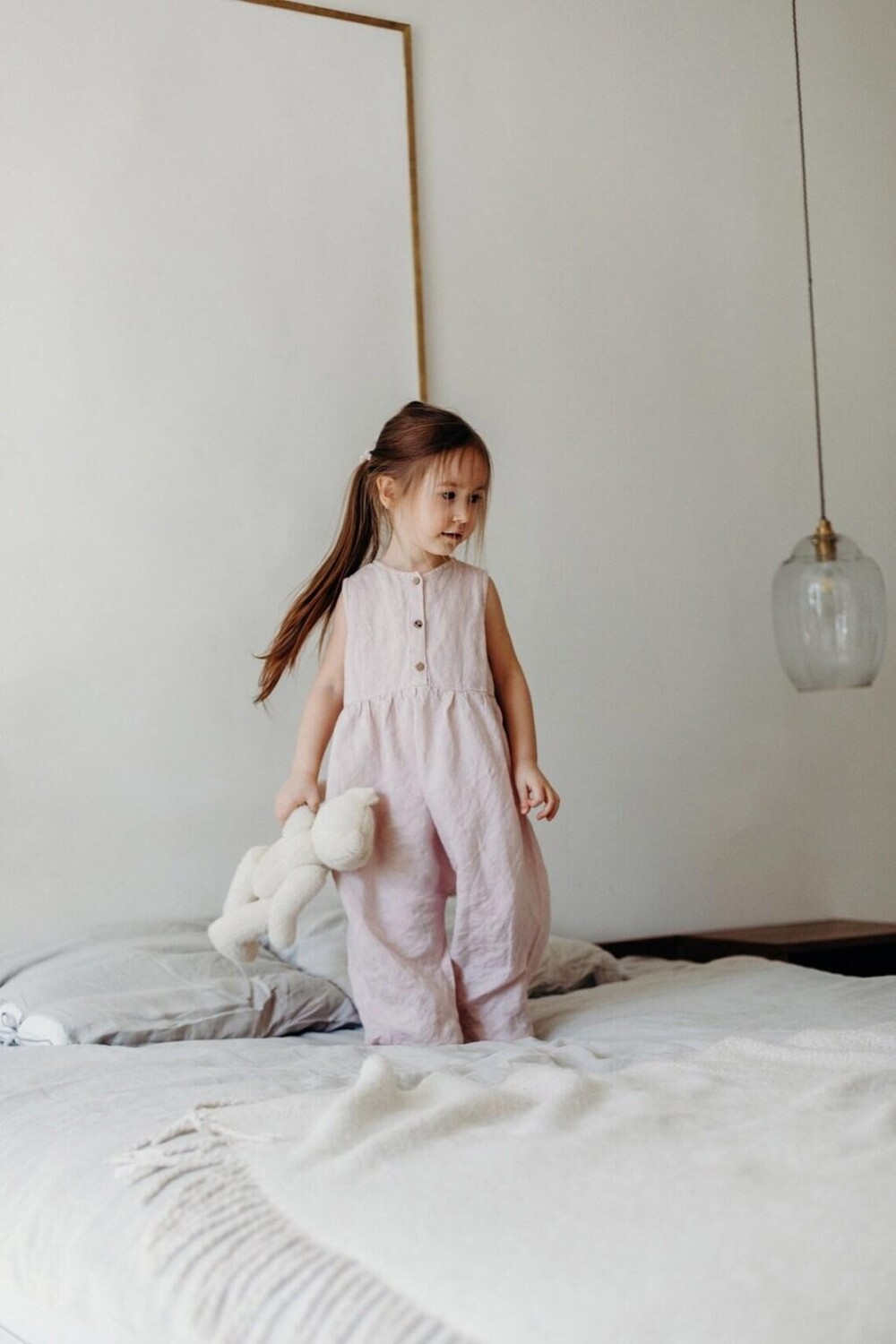 [바로 배송] 린넨 오버롤 스카이 - 키즈