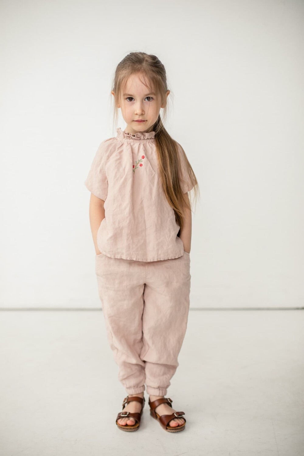 [바로 배송] 린넨 러플 튜닉 라일라 숏슬리브 - 키즈
